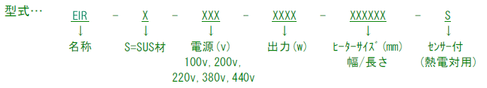 | 型 式 | 電源 (v) | 出力 (w) | ヒーターサイズ(mm) 幅×長さ |