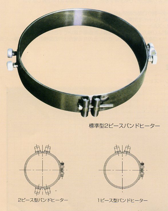 バンドヒーターは金属による被覆形成されておりますから電気的、機械的に安定であり、抜群の熱効率が得られます。