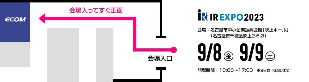 当社は 9月8日(金)及び 9日(土)に、名古屋市の吹上ホールにて開催される「名証IRエキスポ2023」へ出展することとなりました。