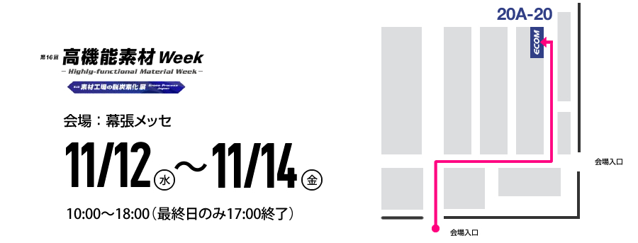 当社は11月12日(水)から14日(金)に開催される「素材工場の脱炭素化展 第16回高機能素材Week」に出展します。
